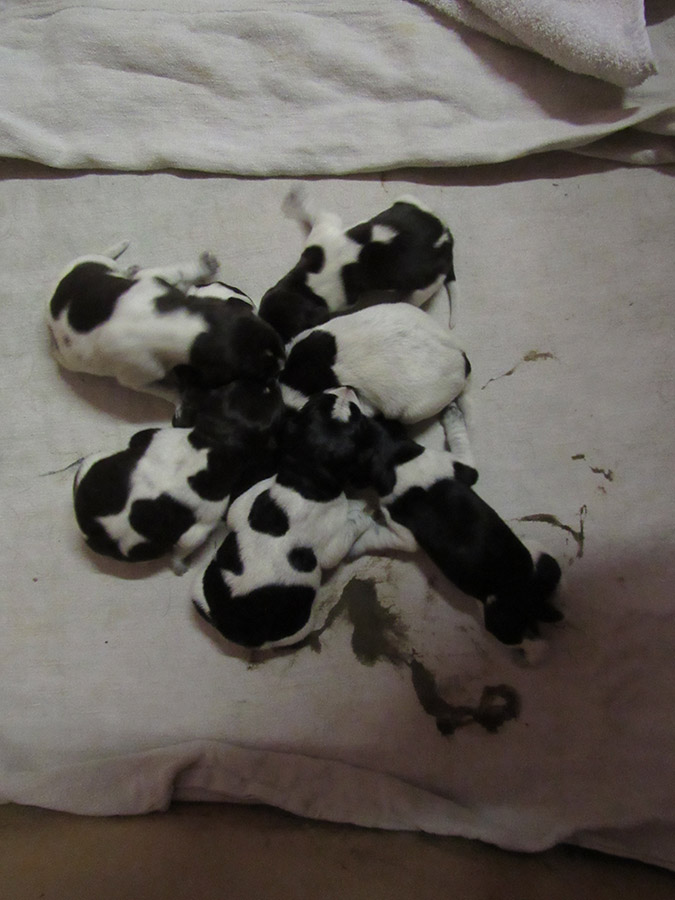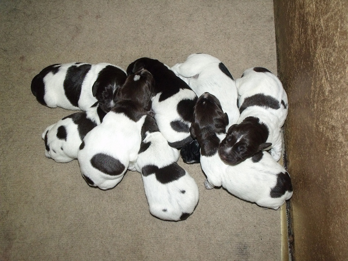 Beginnt im Frühjahr mit dem Absuchen der Wiesen auf Rehkitze vor dem Mähen; dies ist in unserem Revier der einzige Einsatz im Vorstehen. Über das ganze Jahr finden Nachsucheneinsätze statt – überwiegend auf Reh- und Schwarzwild. Da sehr viel Mais angebaut wird, werden meine Hunde häufig auf Maisdrückjagden eingesetzt. Ab Oktober ist das Einsatzgebiet die Treib- und Drückjagd überwiegend auf Schwarzwild, wobei vor allem die Reviere an den Flusshängen von Rhein und Lahn ein steiles und schwieriges Gelände mit verwilderten Weinbergen mit hohem Dornenbewuchs und Brombeerverhauen darstellen. Meine Hunde haben sich hier vielfach bewährt und viel Erfahrung auf Schwarzwild gesammelt. Bei Jagdfreunden bietet sich darüber hinaus gelegentlich eine Einladung auf Fasanen- und Hasenjagd als willkommene Abwechslung. Dort können auch meine Hunde für die Verbandsprüfungen insbesondere für die Feldarbeit vorbereitet werden.